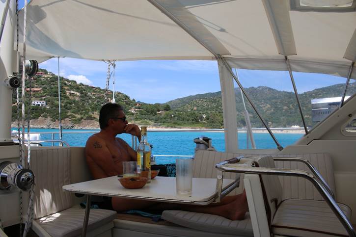 En de matinée, au mouillage de la Torre delle Stelle, qui nous laisse rêveurs, le rhum de Cuba a remplacé l’irremplaçable rhum de Guadeloupe.