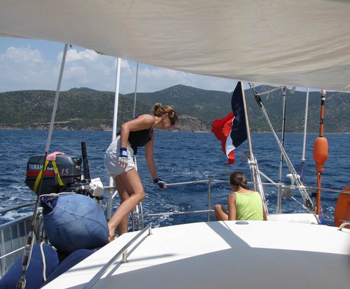 Et voilà mère et fille en train de lover les amarres et ranger les pare-battages.
