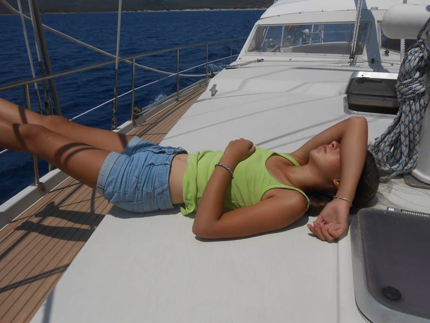 Je me suis levée à 9h20 alors que je devais me réveiller très tôt pour partir. Enfin, cela n’a pas été bien grave car nous sommes partis de Porto di Teulada pour la ville car South Cape avait besoin d’un médecin. Rien de grave, rassurez-vous, juste pour s’assurer du traitement. Ah l’Italie ! Des gens si gentils et trilingues : italien, français et anglais.