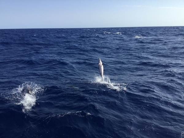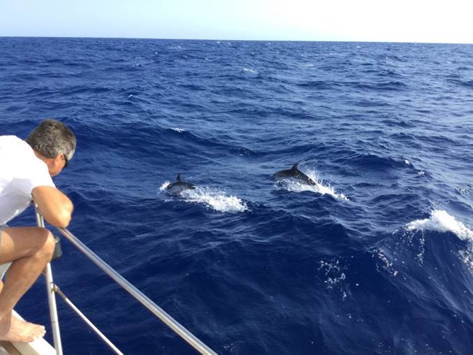 Et un peu plus tard une petite équipe de dauphins vient jouer avec nous et avec la coque du bateau… Tout simplement incroyable…