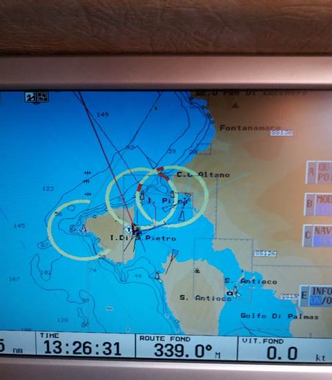 L’île de San Pietro nous accueille alors qu’un fort vent venant du nord s’est levé : le mistral nous a rattrapés.