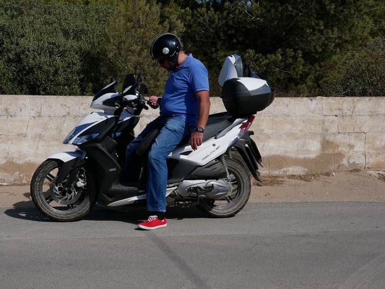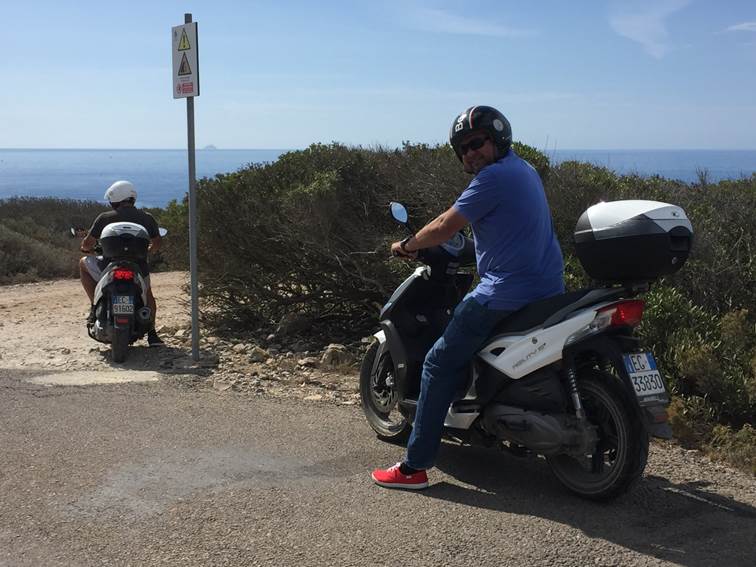Après un petit-déjeuner de Sarde, nous partons pour l’aventura Sarde, location de scooters 125 pour aller découvrir l’isola de San Petro…