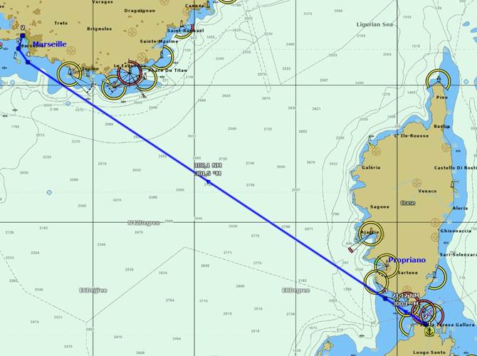 Nous avons un temps hésité à faire une escale en Corse, mais une arrivée du vendredi après-midi reste la meilleure option pour Mérou et moi-même, Caposud, présentement.