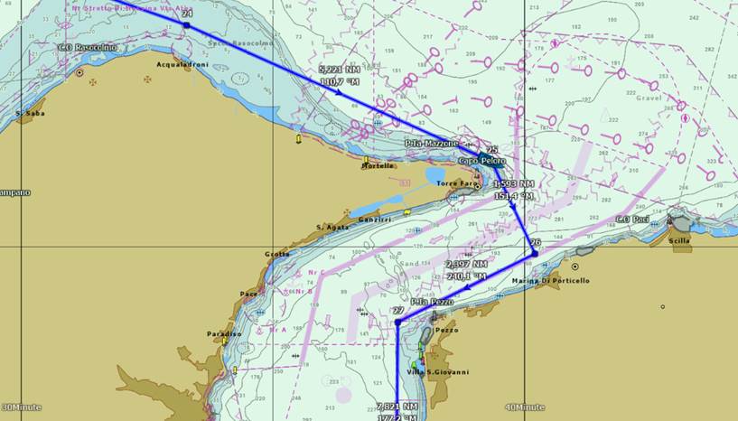Peu après avoir passé le Cap Peloro, nous embouquons le canal de MESSINE.