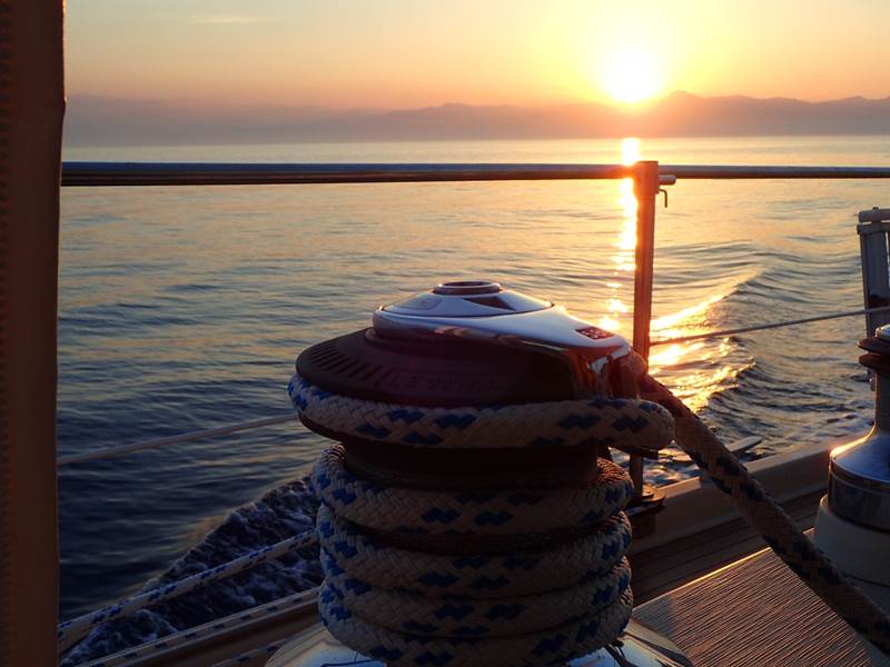 Nous longeons les côtes de la Sicile, dernière terre avant l’ile Grecque de Zakynthos, prochaine destination, à travers les brumes des larmes de Charybde, Scylla et la Méduse, toutes et tous malheureux de nous voir les quitter si tôt.