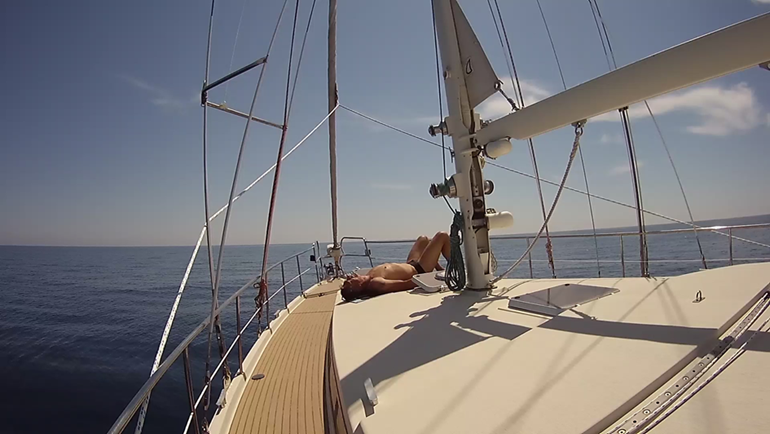 Puis, c’est l’abandon à la mer et au soleil, l’équipage retrouvant des comportements ataviques de baigneurs en bord de piscine.