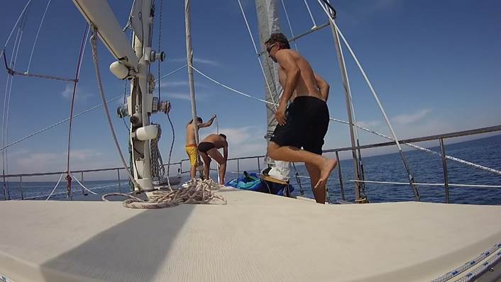 En cette belle journée de mer, l’équipage vaque à ses occupations favorites :