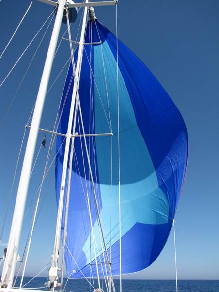 Et quand même, un petit vent se lève, qui nous rappelle que nous sommes marins, et nous déployons alors le spi avec la sérénité qui nous est commune.