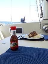 Caposud capite et nous sort une nouvelle fois le grand jeu : pavé de (notre) thon mi-cuit sauce Teryaki, puis un Tiramisu digne d’une finale du « meilleur pâtissier ».