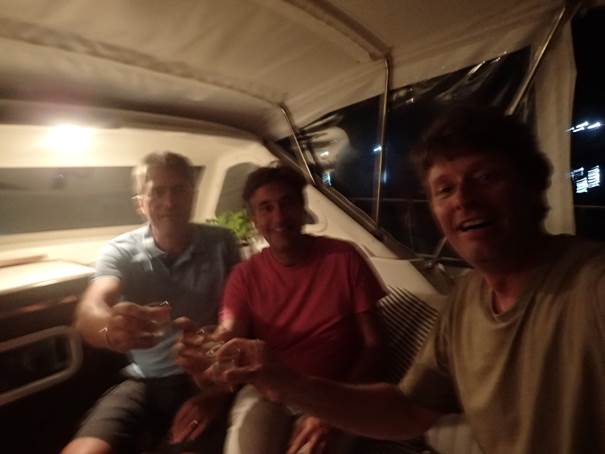 Un mouillage calme malgré de nombreux voisins. Des Belges, des Anglais, des Allemands, des Américains (bizarre, des espions sûrement, suivant les manœuvres des fous d’hier), des Suisses, des Suédois…