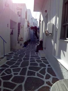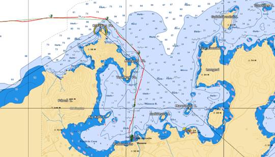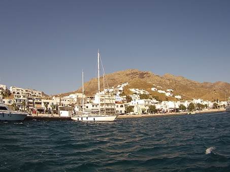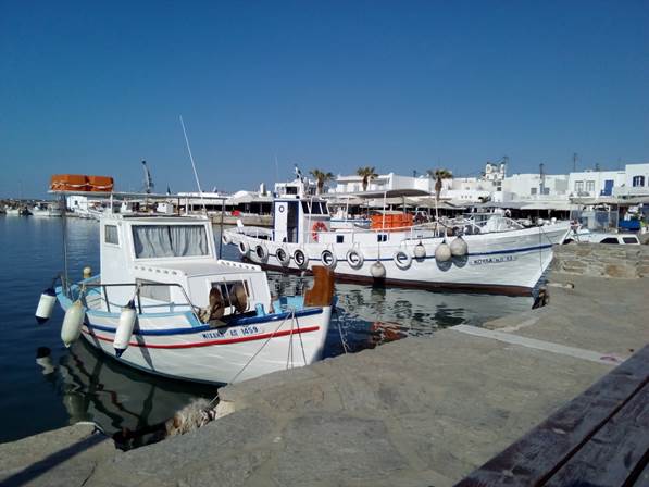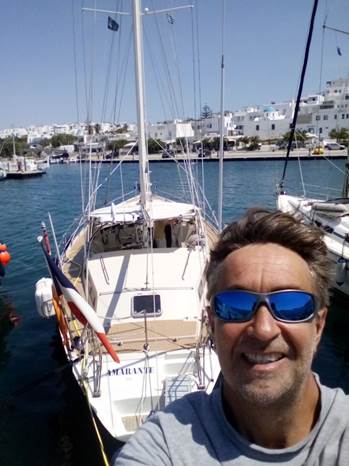 Nous lui « mettons » deux milles à l’entrée de la Marina de Naoussa.