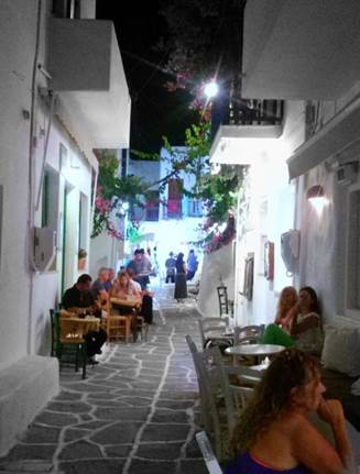 Pour notre dernière soirée en équipage, nous dînons de mézzés joliment cuisinés dans un restaurant de rue (la place pour 3 tables en salle, 25 tables dans la rue…) : le Kafenio Palla Agora.
