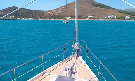 Après un bon dodos (prononcer « dodoss », à la grecque) à la marina d’Naoussa puis quelques coursos (même remarque que précédemment) à la supérette du coin, nous appareillons pour Sifnos. Au moteur car vent soit aux abonnés absents, soit de fassos…