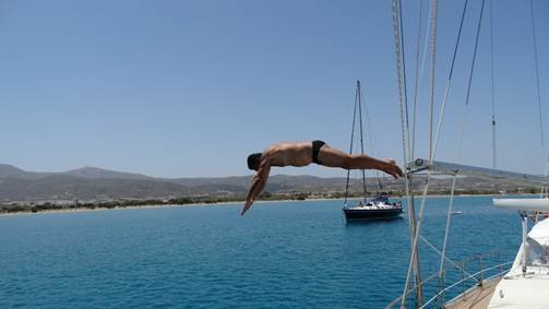S’ensuivent une baignade merveilleuse avec une démonstration de plongeon de haut vol du capitaine, une caïpirinhia bienvenue et des darnes de thon grillées, pêchées et préparées par Chief cook Caposud, que même en y repensant j’en ai la larme à l’œil, con !