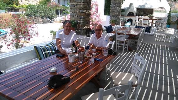 Qui plus est le père de la patronne était commandant dans la marine marchande grecque (photos sur les murs), ce qui n’est pas pour déplaire aux 2 retraités de la MarMar !