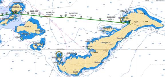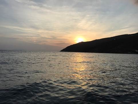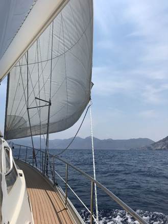 Le vent s’établit au Nord-Ouest à 15 nœuds, ce qui nous permet un déboulé au travers à 7 nœuds, toutes voiles dehors, pendant cette traversée de 3 heures.