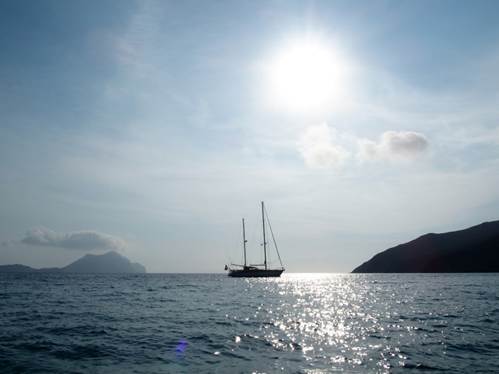 Nous pénétrons dans la baie, à l’abri du vent, dès le cap Akrotiri passé.