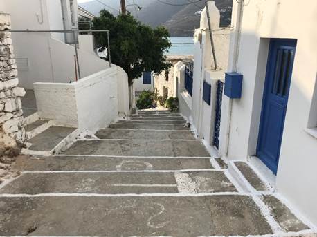 Le village de bord de mer, avec son petit port tranquille nous projette ses tons blancs et bleus.