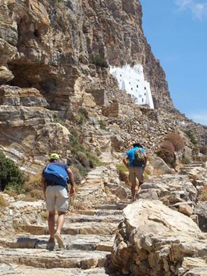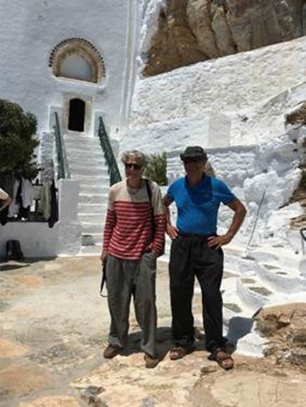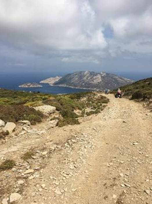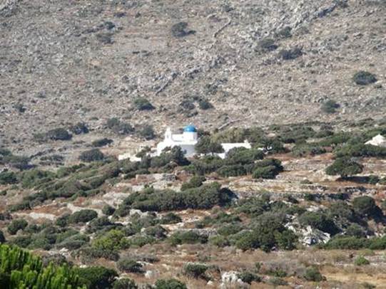 Une fois en possession de nos trois superbes engins, nous fixons comme objectif de la matinée, de nous rendre au monastère de « Panayia Hozviótissa » (Grâce de la Vierge Marie de Panagia) situé à une quinzaine de kilomètres à l’Ouest de la baie d’Aigiali ou nous sommes.