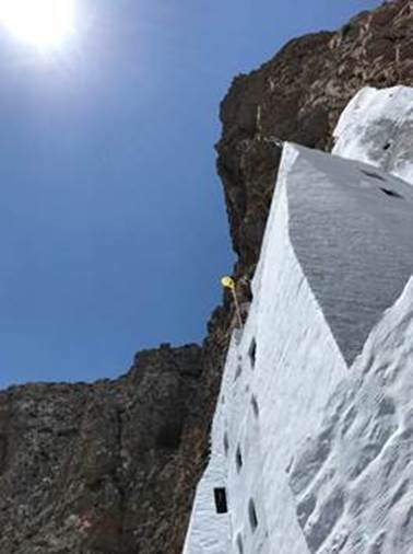 A la fin de notre montée pédestre, apparait le monastère majestueux, construit à même la roche, parmi les éboulis ;