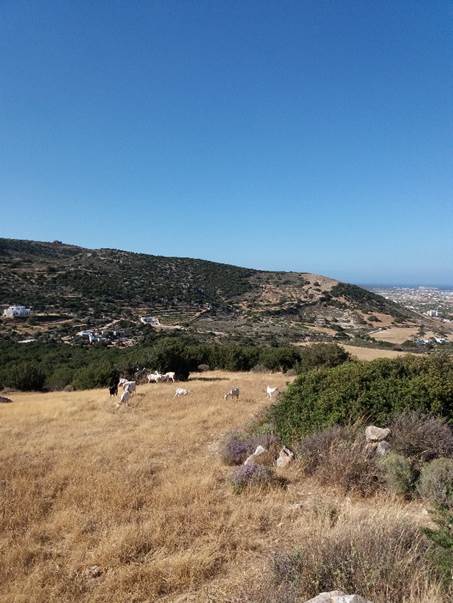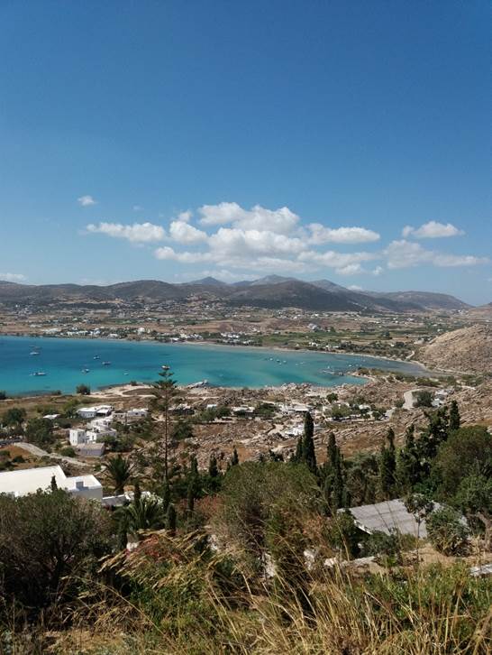 Petite heure de footing et de grimpette sur les collines environnantes me permet d’avoir une vue d’ensemble de la baie de Naoussa.
