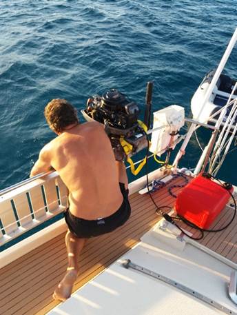En guise d’apéro, nous avons eu des paquets d’eau de mer, le moteur de l’annexe tombant lâchement en panne à une cinquantaine de mètres d’Amarante.