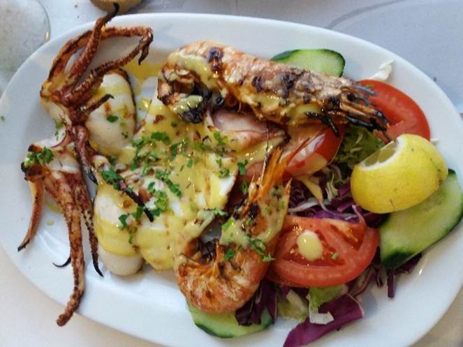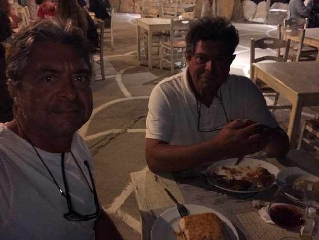Fatigués par une longue route en mer, nous repérons sur l’appli « l’âtre-ripe-Aldo-vaï-et-ta-sœur » le restaurant Το Απομερο