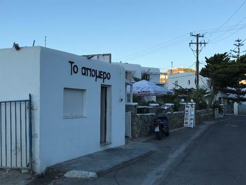 Fatigués par une longue route en mer, nous repérons sur l’appli « l’âtre-ripe-Aldo-vaï-et-ta-sœur » le restaurant Το Απομερο