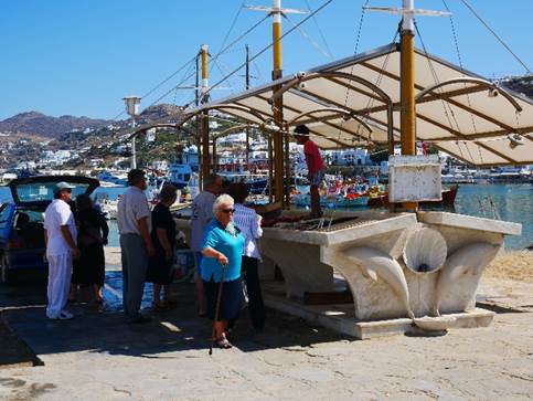 Ambiance particulière à Mykonos où la concentration de touristes est assez forte et dénature l’exotisme du lieu.