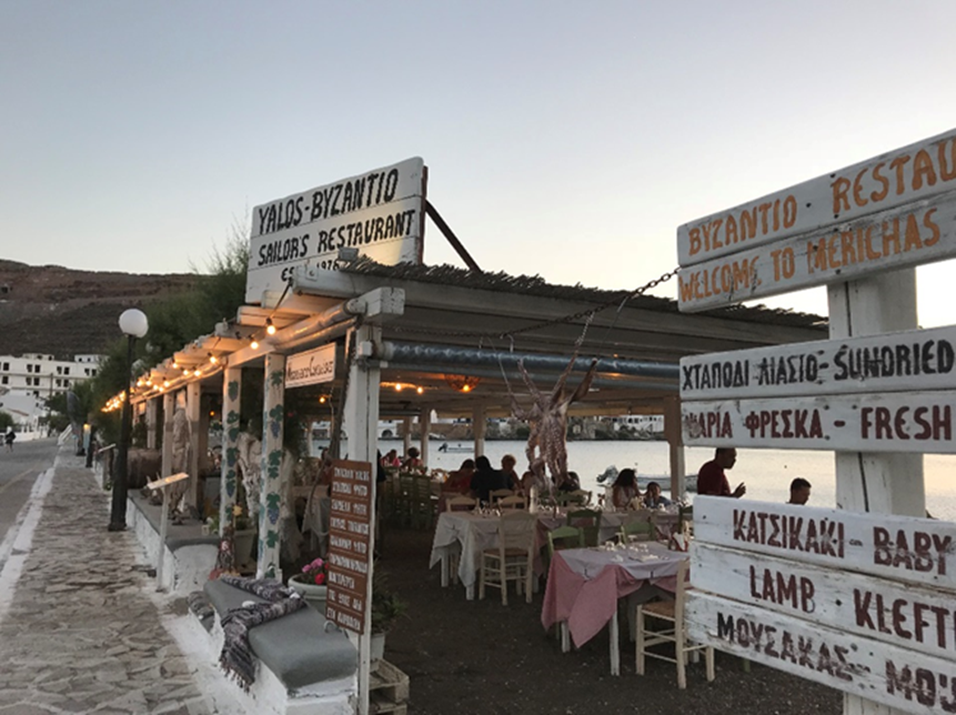 Après le coucher du soleil, et bien avant le nôtre, la taverne Byzanto, repérée sur l’excellente appli « triple-pas-de-valseur », mise à l’écran de nos téléphones-malins pour l’occasion (genre mise-appli-en-boucle) nous accueille.