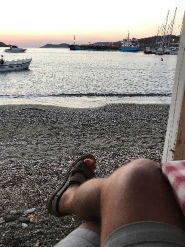 Après le coucher du soleil, et bien avant le nôtre, la taverne Byzanto, repérée sur l’excellente appli « triple-pas-de-valseur », mise à l’écran de nos téléphones-malins pour l’occasion (genre mise-appli-en-boucle) nous accueille.
