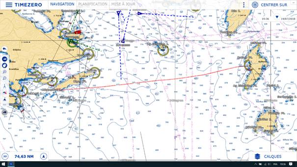 Nous naviguons au près, à la voile la plupart du temps, aidés du moteur quand le vent refuse. Amarante donne la priorité à la vitesse moyenne.