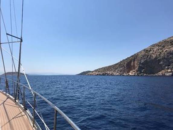 Nous mettons le cap sur Ermioni, petit port de la côte du Pélopponèse, au creux d’une baie abritée.