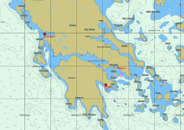 Les retours, rapides, permettent d ‘envisager deux solutions : Prévéza sur la côte Adriatique, et Kilada, sur la façade Est de Péloponnèse.