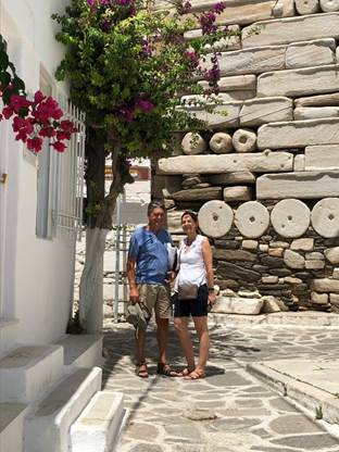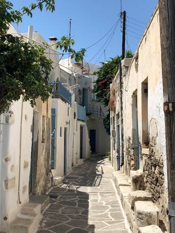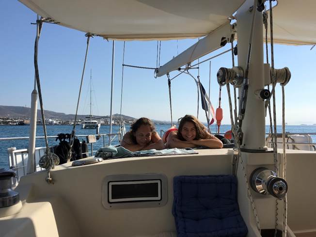 Nous profitons de tous les avantages de Paroikia : un beau mouillage, avec une eau propre par ce temps de vent fort (par temps calme, elle a tendance à se charger…), et la proximité de la ville ou nous allons avitailler et nous promener.