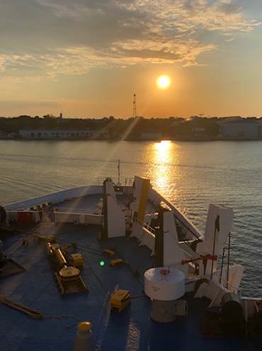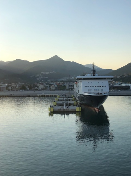 A Brindisi, nous aurons à prendre un ferry qui nous fera traverser l’Adriatique jusqu’à Igoumenitsa en Grèce, puis encore 5 heures de route nous attendraient jusqu’à Kilada où se trouve notre fier gréement. Une trotte !