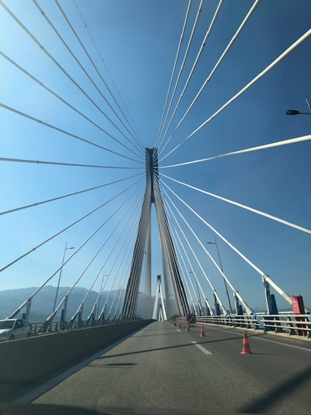 Nous passons le golfe de Patras sur le pont « Riou ». Une technologie qui rappelle un peu un certain pont de Normandie…