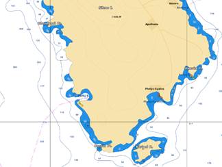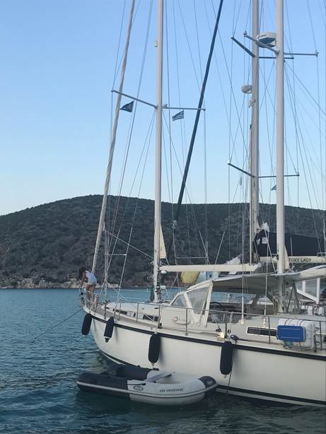 Le mouillage est calme : la baie de Porto-Cheli est presque complètement fermée.