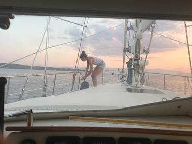 Enfin une vraie vie de bateau… avec les obligations du bateau : surveiller les batteries, gérer le groupe, produire de l’eau, cuisine, nettoyage, et bricolage quand même…
