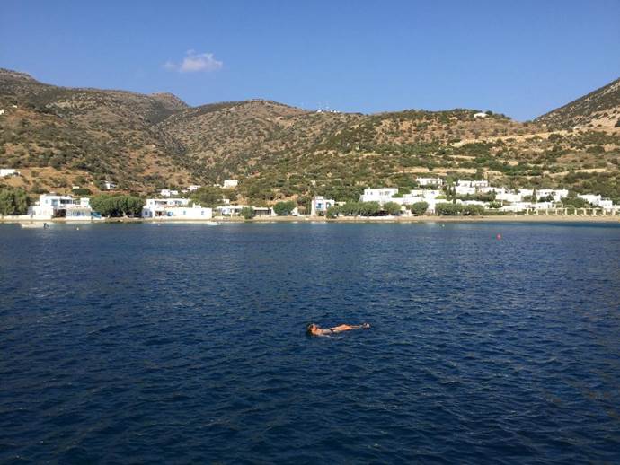 Nous naviguons deux heures et demie pour parvenir à la baie de Vathi sur l’île de Sifnos.