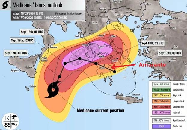 Prévu pour arriver sur Athènes, il sera finalement bloqué dans sa progression par les monts du Péloponnèse, et en gagnant en puissance, se déversera sur les îles Ioniennes, avec des dégâts matériels et humains.