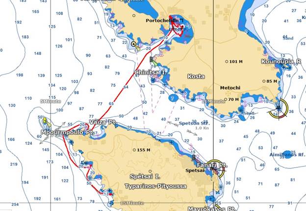 En route vers la baie connue, le vent se met à souffler du fond du golfe Argolique, ce qui m’amène à faire le tour de l’île pour trouver un abri confortable.