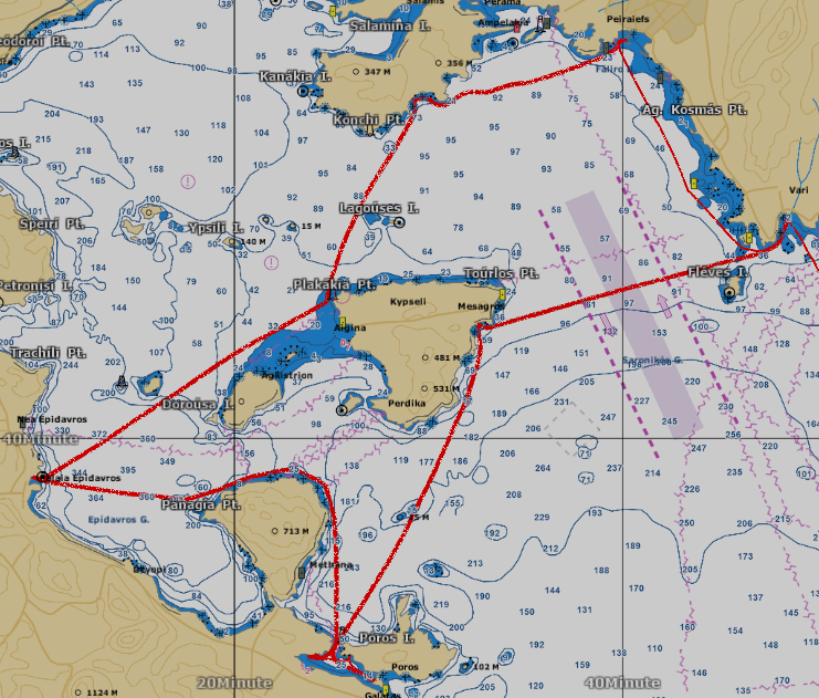 Nous nous préparons au départ vers Salamine, où nous passerons la nuit au mouillage dans la baie de Dimitrani.
