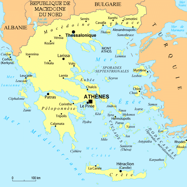 La Grèce est continentale et insulaire (îles Ioniennes, Cyclades, Sporades, Dodécanèse, Crète).