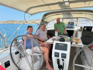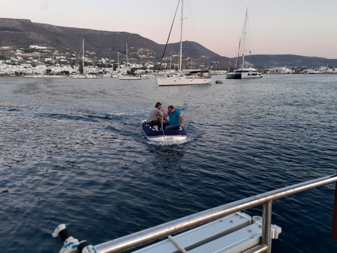 Le 6 juillet, appareillage pour rejoindre à nouveau Paroikia, l’arrivée de notre troisième équipier, Barracuda, est annoncée le lendemain.