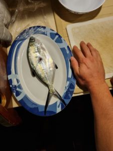 L’équipe s’installe puis nous sortons pour dîner à terre pendant que le soir tombe.
